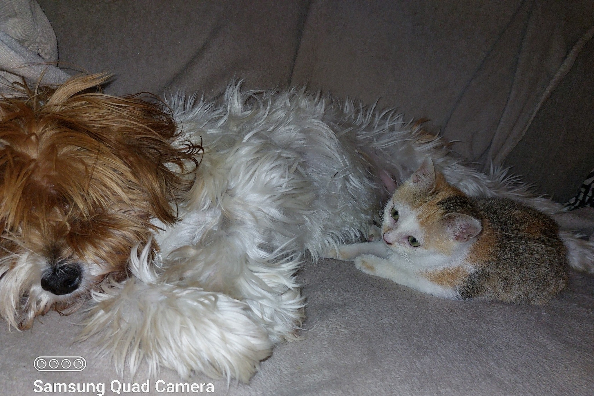 Elle connaît aussi Nougat, le chien de Patricia et n’en a pas peur, puisqu’elle va dormir avec lui… Une vraie petite exploratrice pleine de confiance ! 🐕