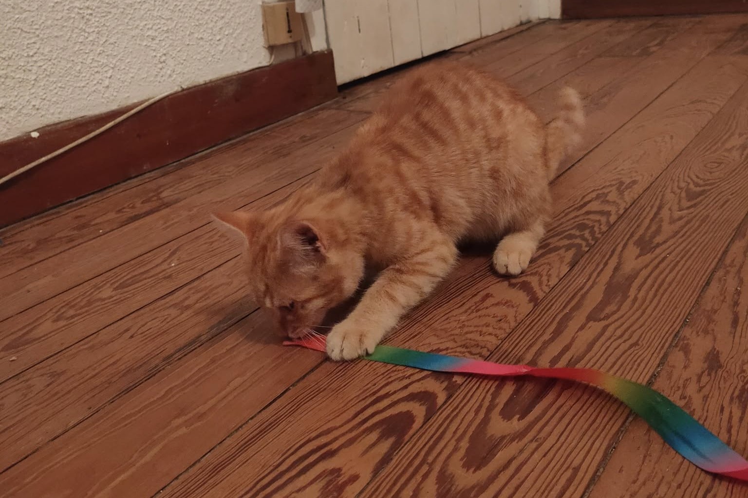 Comme tout chaton qui se respecte, Automne aime s’amuser avec les jouets que Charlotte laisse à la disposition de ses petits protégés… Souris, serpentins, balles, super roller canne à pêche tout y passe… 🥎
