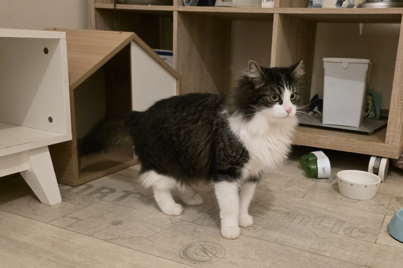 Côté gourmandise, Pénélope mange quelques croquettes, mais son vrai plaisir reste sans hésiter les sachets fraîcheur et les boîtes, qu’elle savoure avec enthousiasme 😋.